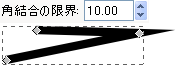 角結合の限界とは、左の結合でどの角度まで鋭利にするかの限界値です。これは説明が難しいので画像を交えて説明しましょう。