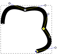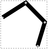 いかがでしょう。これも立派な曲線ですよね。このように端々を折った線も容易に描けます。これにはノードが4点あります。角をつけた分だけノードが増えるわけです。クリックした数とも言い換えられるでしょう。