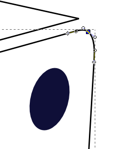 直線を活かしたかったので、両サイドにノードを打ち込み、角だったノードを丸めました。そのまま角をスムーズにしてもいいのですが、編集が少し面倒だったりします。ですので今回はこのような手法で角を作りました。これはどの角でも同じことをやっています。